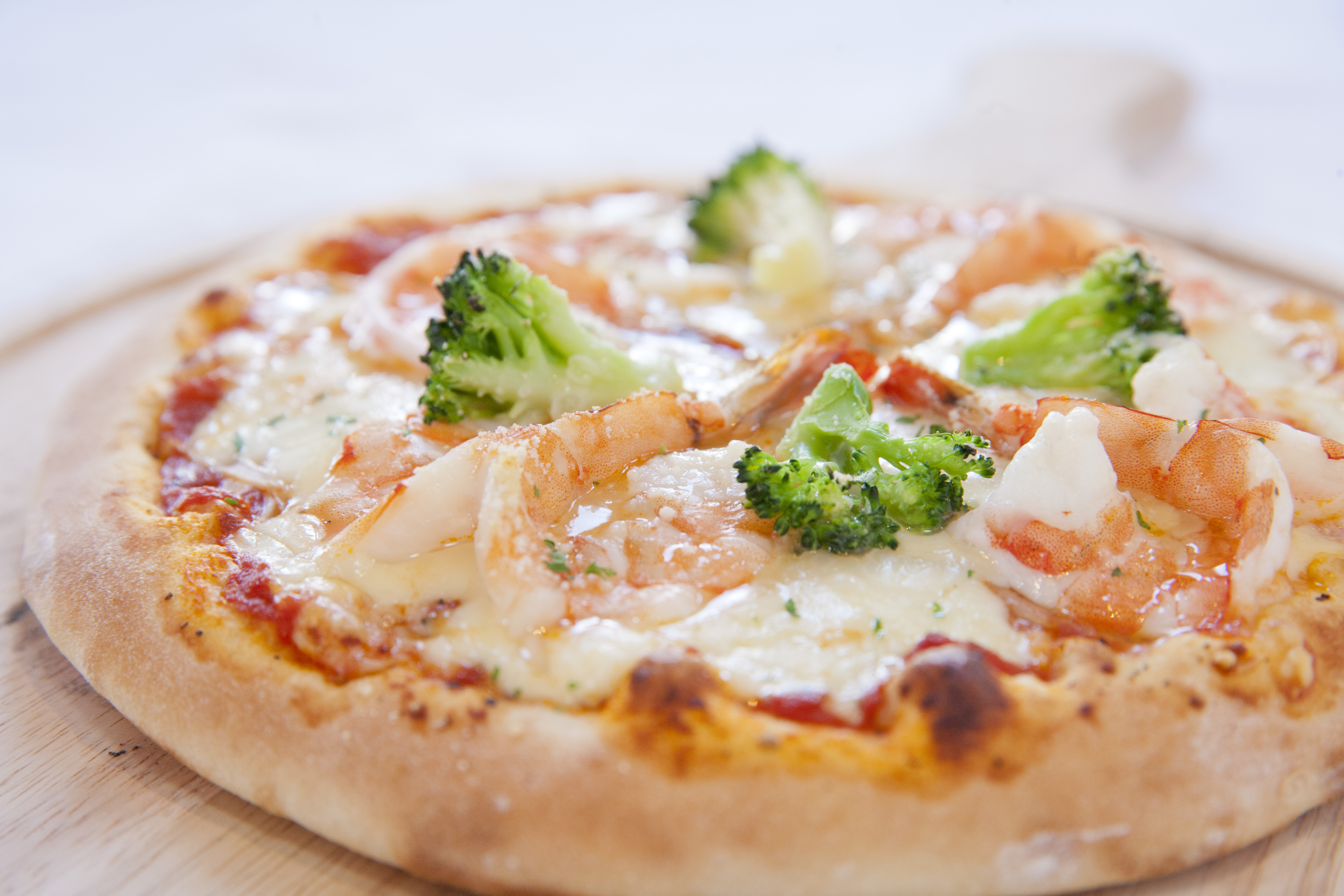 生地(小麦粉、砂糖、酵母、食塩、脱脂粉乳、乳化剤発酵風味料)、ナチュラルチーズ、エビ、ブロッコリ、ピザソース(トマト、にんにく、玉ねぎ、人参、セロリ)、アンチョビ、グラナパダーノ、オリーブオイル、オレガノ、胡椒